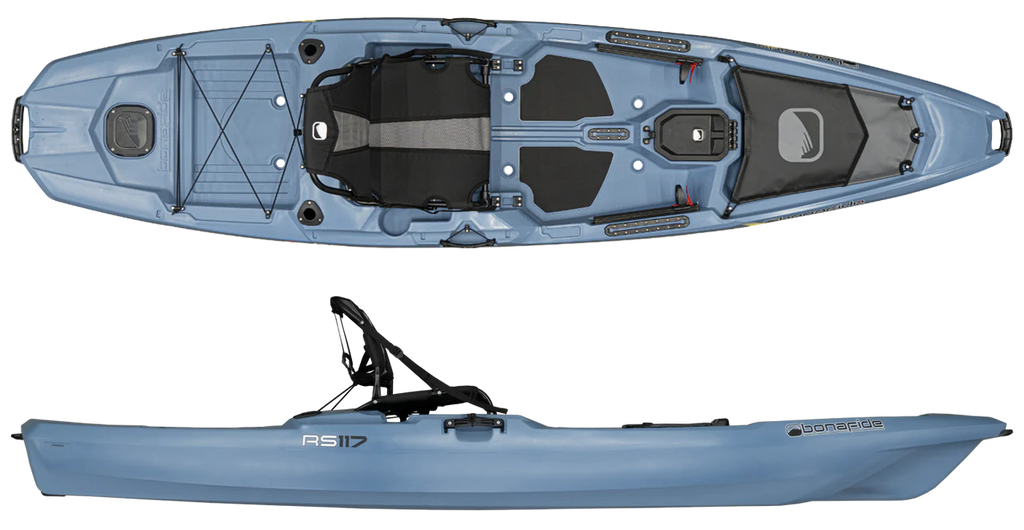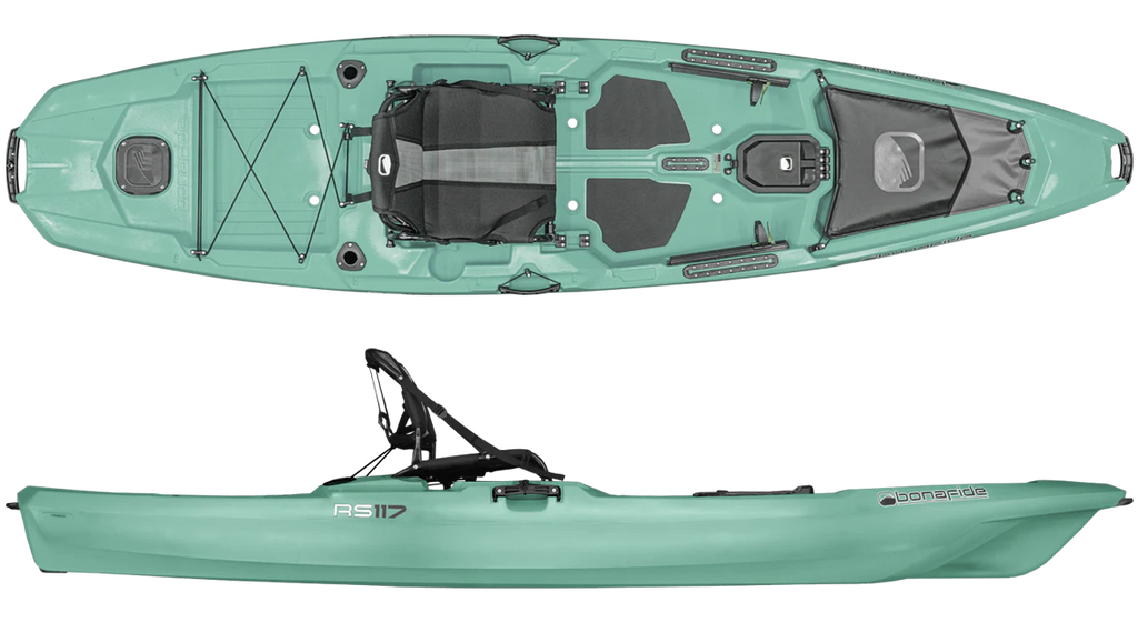 The Bonafide RS117 "RISE Series" shatters the myth that premium fishing kayaks demand premium prices. Built right here in the USA, this beast tackles everything from calm lakes to churning offshore swells with equal confidence. Its Hybrid Catamaran hull delivers rock-solid stability without sacrificing the paddling performance serious anglers demand. The thoughtfully engineered deck layout keeps you comfortable during marathon sessions, while the feature set proves that smart design beats unnecessary complexity. Whether you're chasing trophy fish solo or introducing family to the sport, the RS117 is your ticket to adventure—a no-compromise fishing platform that refuses to break the bank.
